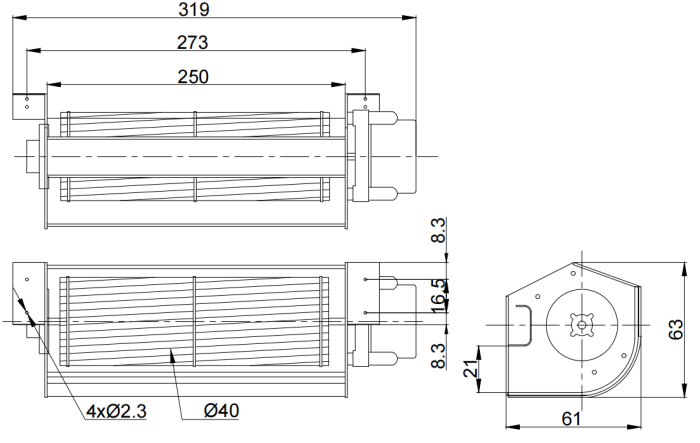 61mm X 63mmX 319mm (see dimension drawing) |