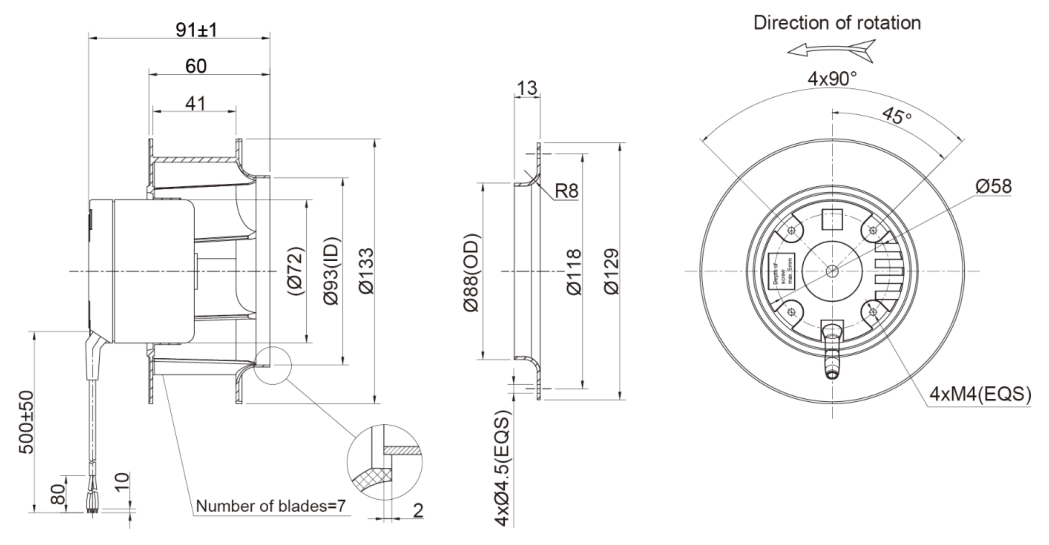 2.四芯線: 紅線=輸出電壓+10VDC(可作為調(diào)速輸入電壓或FG信號(hào)上拉電壓,需與上拉電阻器串聯(lián)使用,詳情見接線圖);黃線=0-10直流電壓調(diào)速/占空比調(diào)速;白線=轉(zhuǎn)速信號(hào)輸出 (示波器);藍(lán)線=接地線。