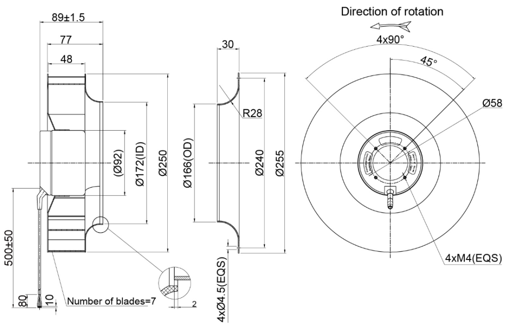 2.四芯線: 紅線=輸出電壓+10VDC(可作為調(diào)速輸入電壓或FG信號(hào)上拉電壓,需與上拉電阻器串聯(lián)使用,詳情見接線圖);黃線=0-10直流電壓調(diào)速/占空比調(diào)速;白線=轉(zhuǎn)速信號(hào)輸出 (示波器);藍(lán)線=接地線。