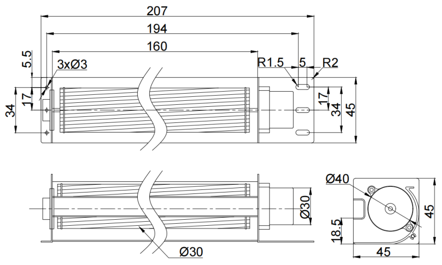 45mm X 45mmX 207mm (see dimension drawing) |