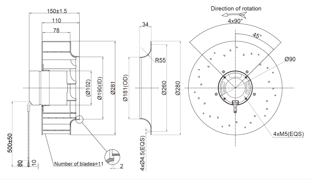 2.四芯線: 紅線=輸出電壓+10VDC(可作為調(diào)速輸入電壓或FG信號上拉電壓,需與上拉電阻器串聯(lián)使用,詳情見接線圖);黃線=0-10直流電壓調(diào)速/占空比調(diào)速;白線=轉(zhuǎn)速信號輸出 (示波器);藍線=接地線。