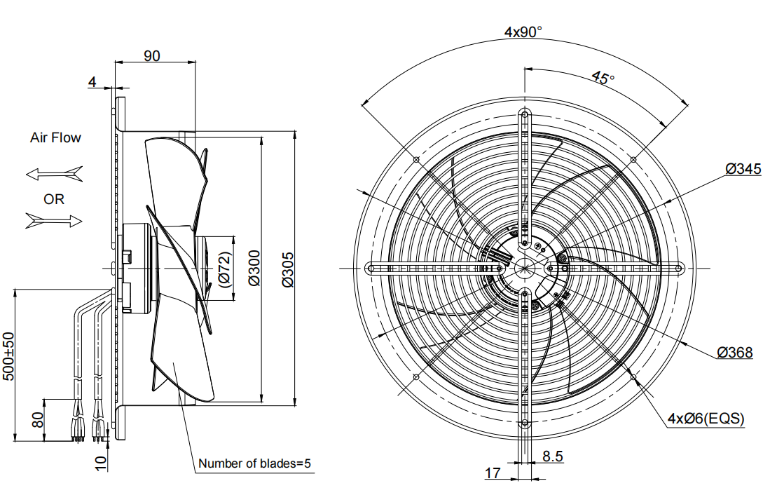 3.四芯線: 紅線=輸出電壓+10VDC(可作為調(diào)速輸入電壓或FG信號上拉電壓,需與上拉電阻器串聯(lián)使用,詳情見接線圖);黃線=0-10直流電壓調(diào)速/占空比調(diào)速;白線=轉(zhuǎn)速信號輸出 (示波器);藍(lán)線=接地線。