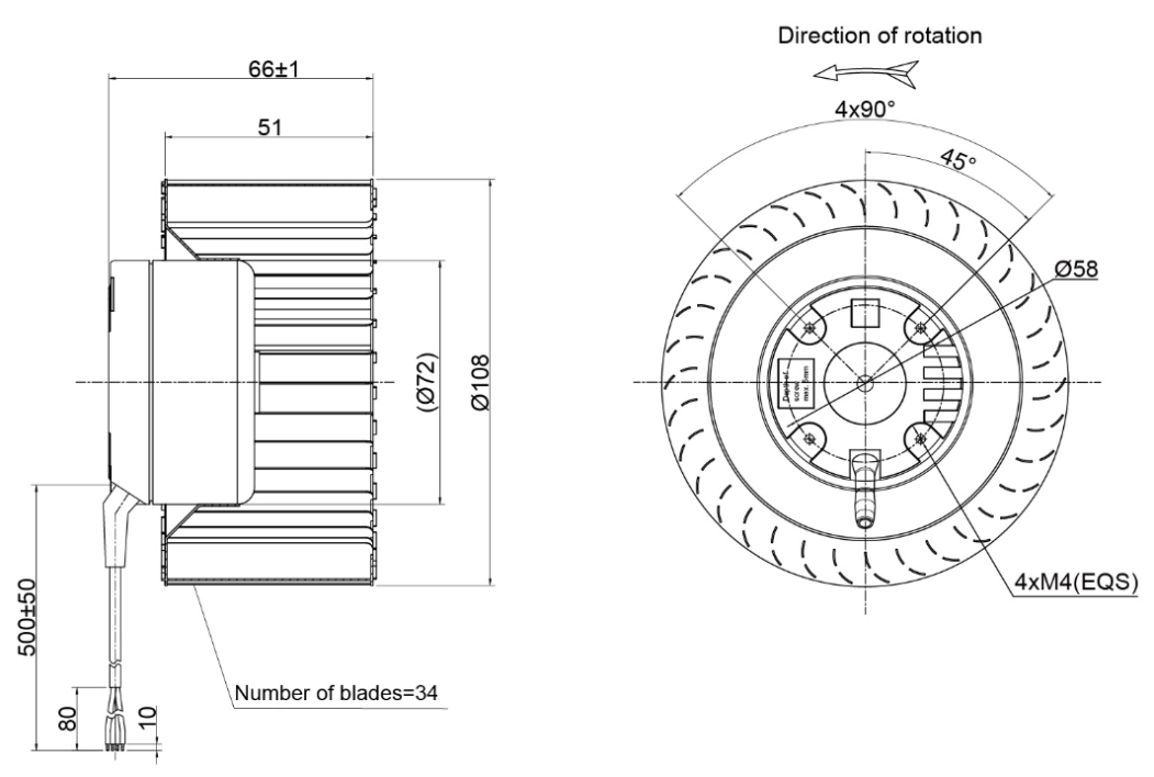 2.四芯線: 紅線=輸出電壓+10VDC(可作為調(diào)速輸入電壓或FG信號上拉電壓,需與上拉電阻器串聯(lián)使用,詳情見接線圖);黃線=0-10直流電壓調(diào)速/占空比調(diào)速;白線=轉(zhuǎn)速信號輸出 (示波器);藍線=接地線。