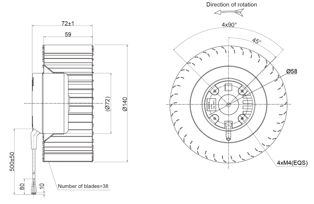 2.四芯線: 紅線=輸出電壓+10VDC(可作為調(diào)速輸入電壓或FG信號(hào)上拉電壓,需與上拉電阻器串聯(lián)使用,詳情見(jiàn)接線圖);黃線=0-10直流電壓調(diào)速/占空比調(diào)速;白線=轉(zhuǎn)速信號(hào)輸出 (示波器);藍(lán)線=接地線。
