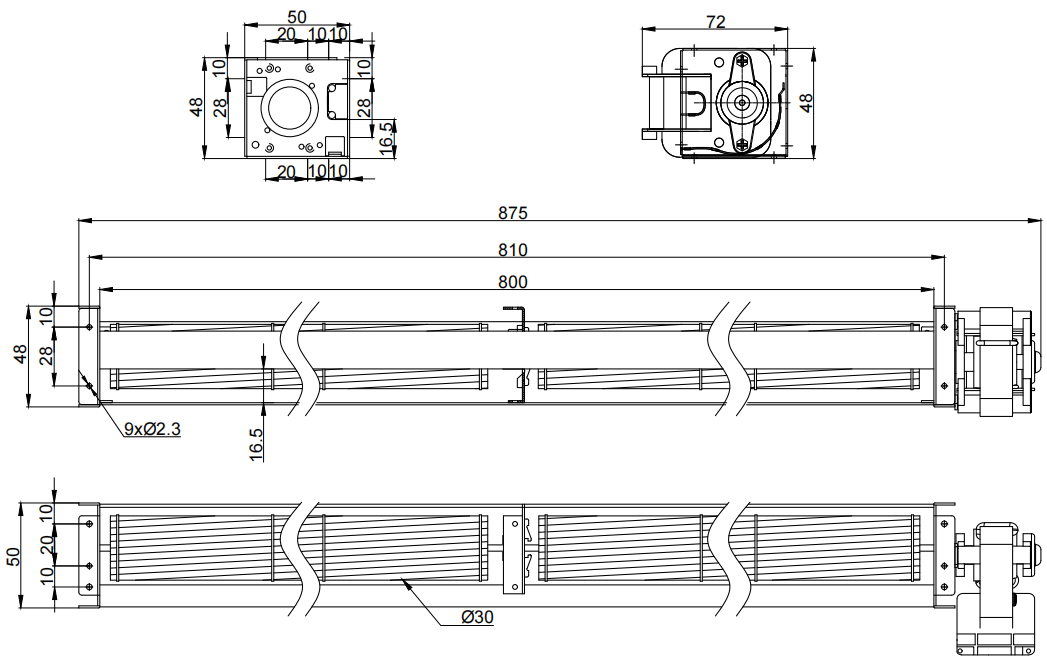 48mm X 50mmX 875mm (see dimension drawing) |
