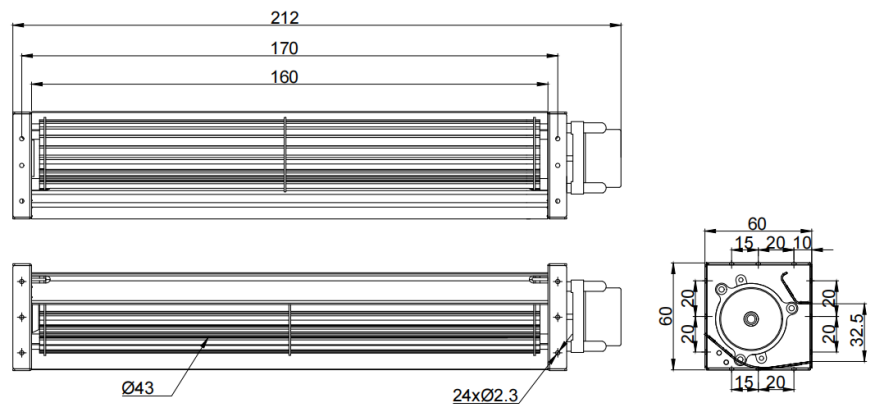 60mm X 60mmX 212mm (see dimension drawing) |