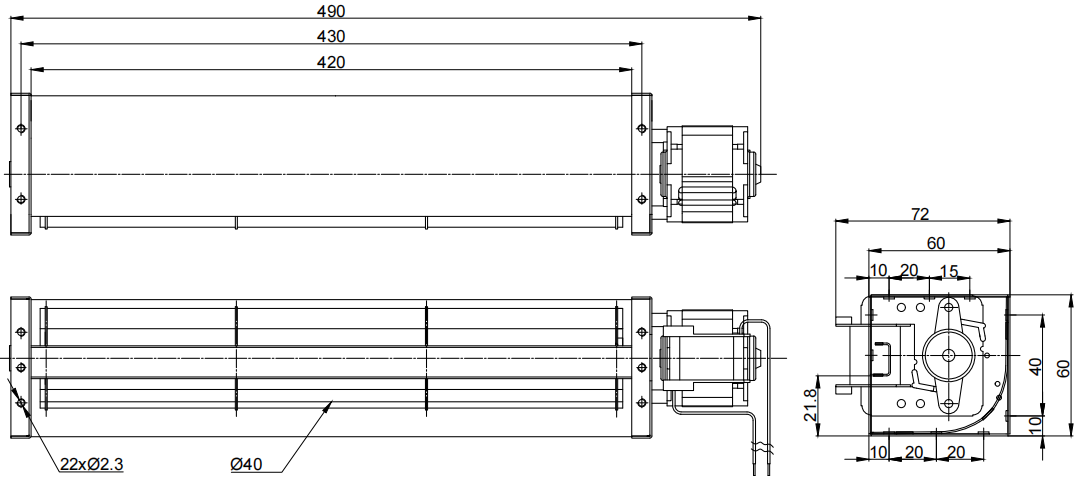 60mm X 60mmX 490mm (see dimension drawing) |