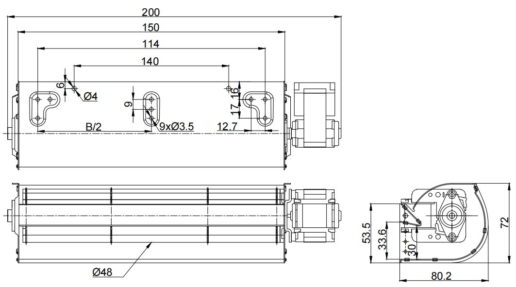 72mm X 80.2mmX 200mm (see dimension drawing) |