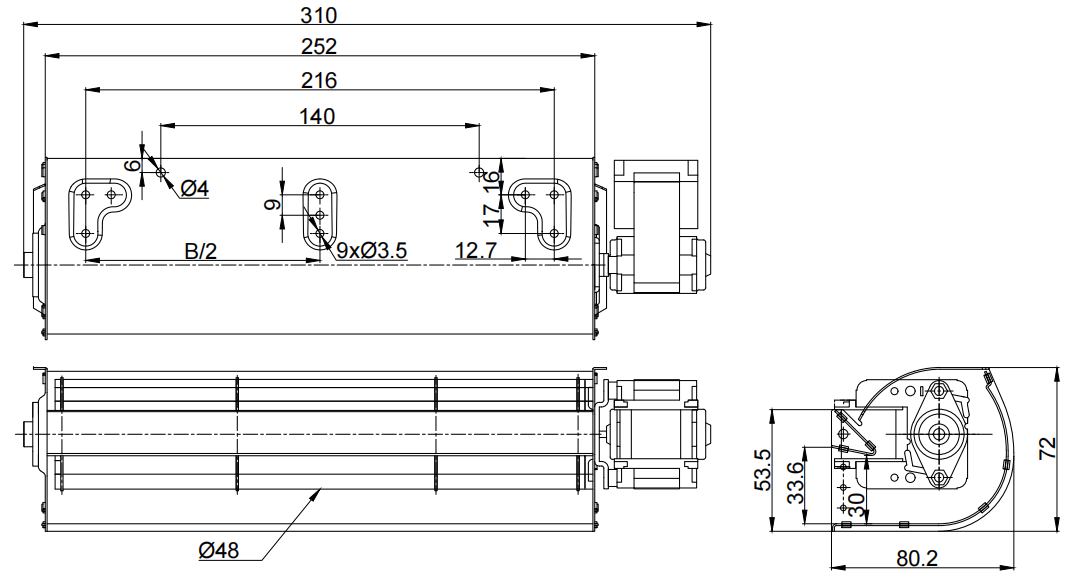 72mm X 80.2mmX 310mm (see dimension drawing) |