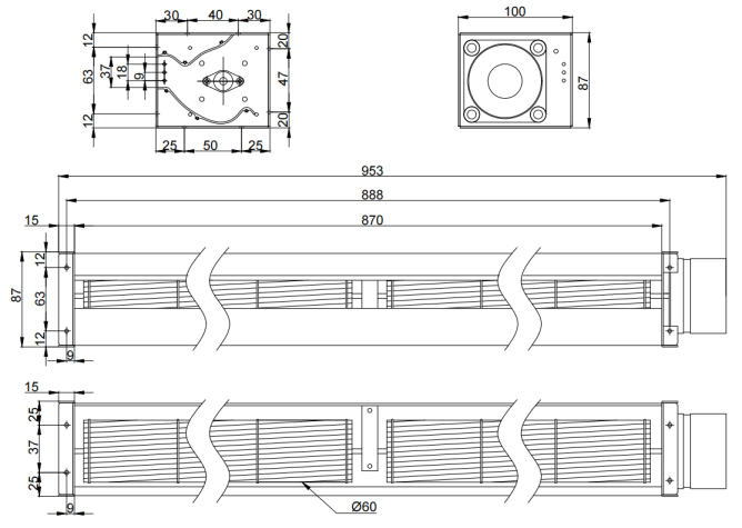 87mm X 100mmX953m (see dimension drawing) |